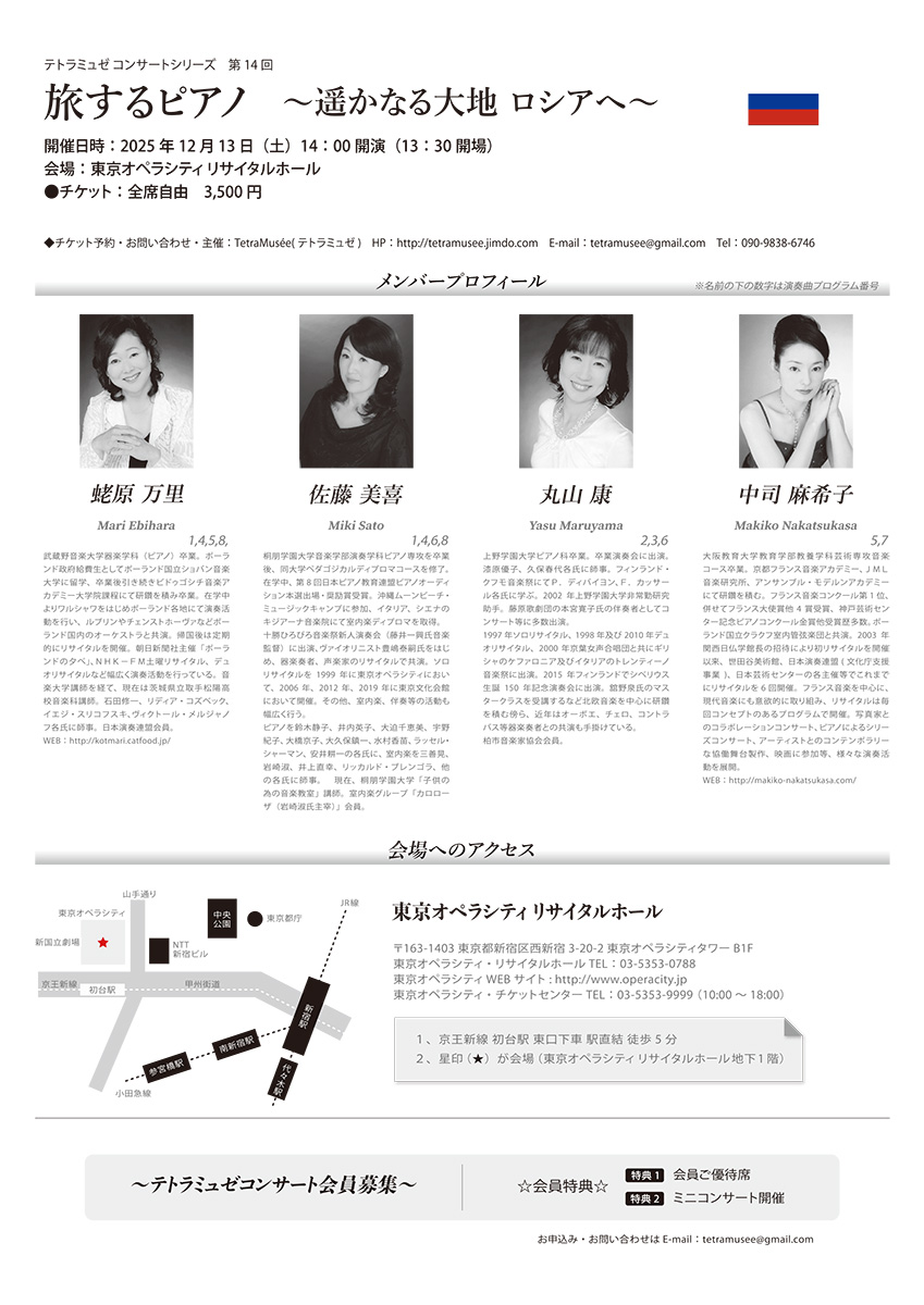 ♪テトラミュゼコンサートシリーズ 第14回 旅するピアノ 〜遥かなる大地ロシアへ〜 <チラシ表・裏> |